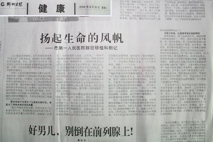 1、“扬起生命的风帆”,此文刊载于湖南《郴州日报》2006年6月20日第五版“健康”专版。责任编辑:陈红军 电话07352895406