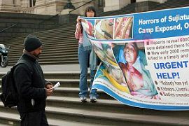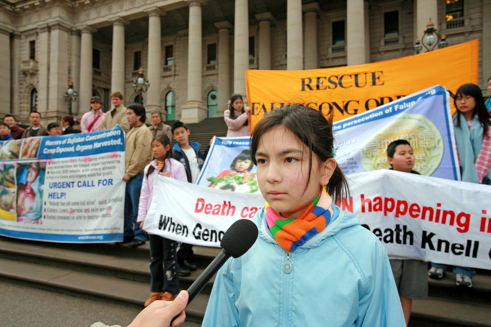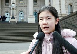 2006年7月8日上午,墨尔本议会大厦迎来了十位法轮功小弟子从悉尼驾车抵达墨尔本,他们在议会大厦前召开了“停止迫害法轮功汽车之旅”新闻发布会。这些孩子们,年龄从11岁到19岁,分别就读于纽省的中学和职业学校。为将中共大肆活体摘取法轮功学员器官牟取暴利的反人类罪行告知善良的澳洲民众,呼吁人们共同起来制止迫害,他们7月3日周一出发,历时四天,走过十个城市,于7月7日抵达墨尔本。其间,他们受到五位市长的热情接待,多家电台现场直播和地方报纸的采访。长途跋涉,一路风尘,孩子们的脸上有些疲惫,但神情中满是欣慰。