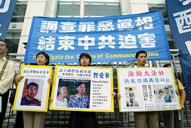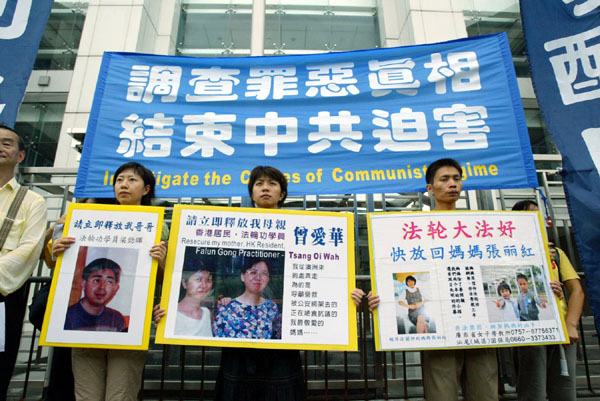 ![]() 学员在中联办外要求中共释放被非法关押的亲人 |