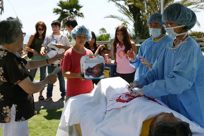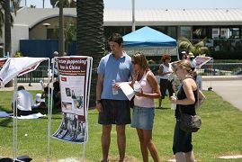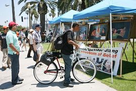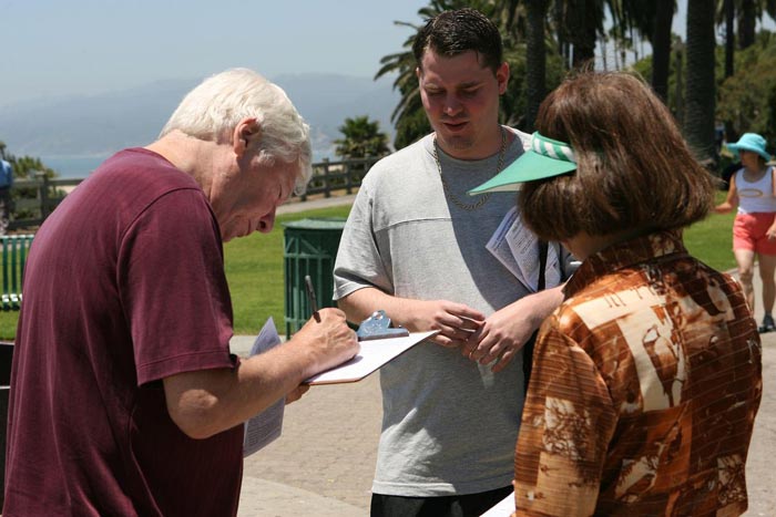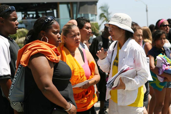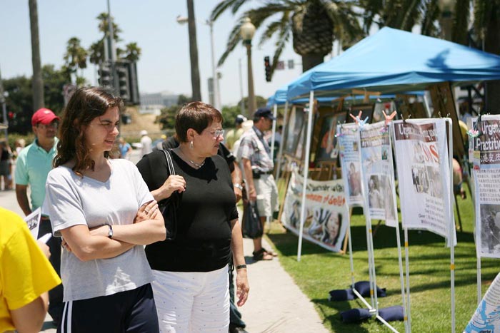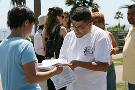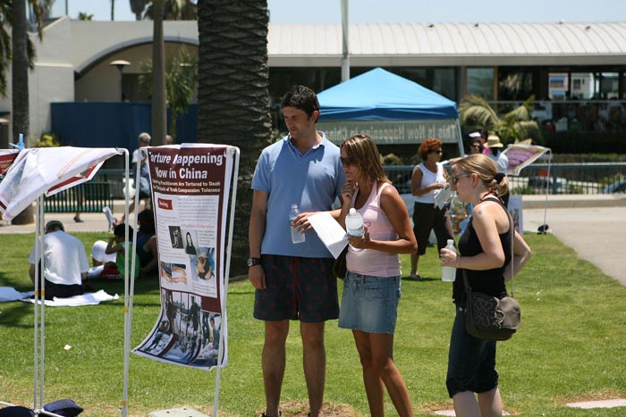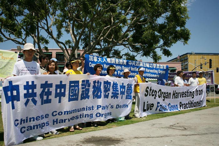 日前,加拿大前亚太司长乔高(David Kilgour)和国际著名人权律师麦塔斯(David Mates)二人组成独立调查组,经过2个月的调查,在2006年7月6日向加拿大媒体公开了一份报告,证实了法轮功学员自今年3月8日以来一直在不断揭露的中共活体摘取法轮功学员器官暴行之真实性,洛杉矶法轮功学员15日在游人如织的圣塔摩尼卡海边揭露中共迫害。