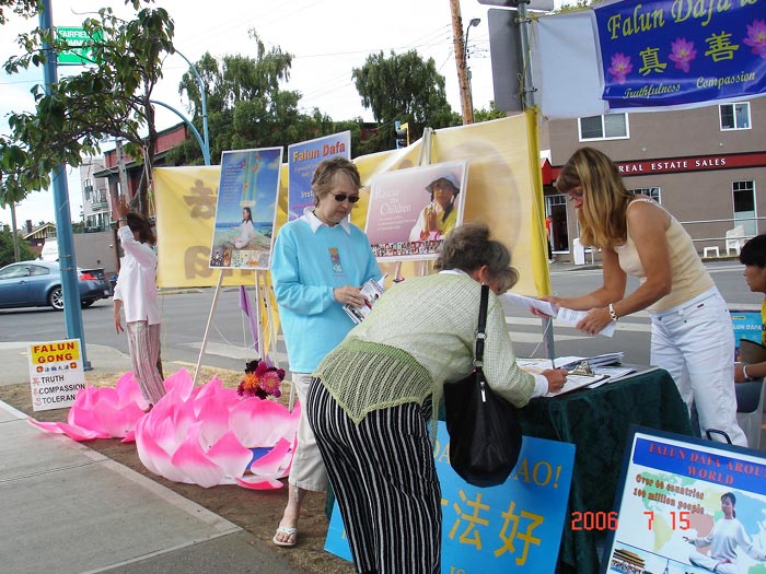 人们纷纷谴责中共的残暴,一位女士气愤的说,“法轮功修炼真善忍,他们(中共)怎么能这么迫害!”一位老先生表示支持学员讲真相揭露中共邪恶;许多人在请愿信上签字抗议中共暴行。一位女士签名后说,“知道吗,第二次世界大战时期,希特勒屠杀犹太人,竟然没有人站出来说话。现在不能再让这样的事情发生了。”