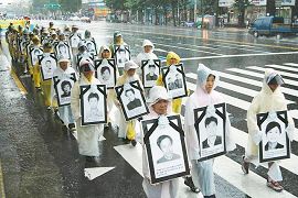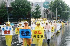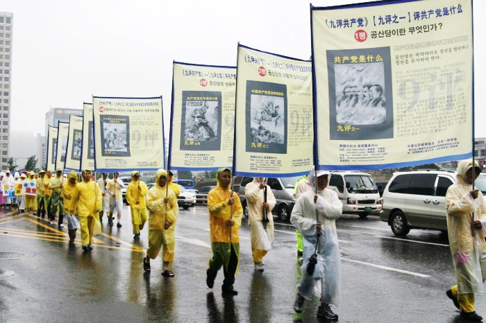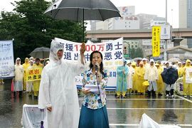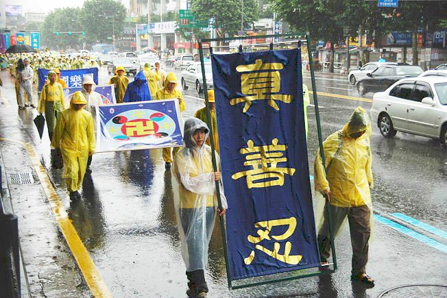 冒雨进行的反迫害大游行