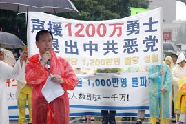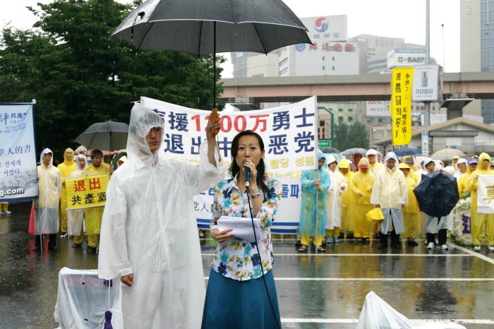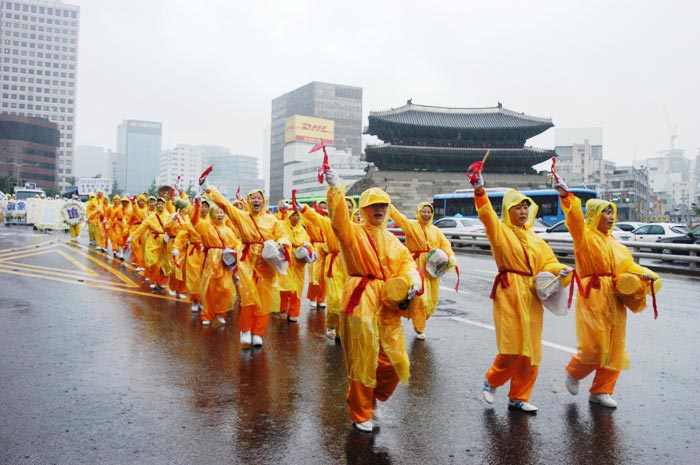 【明慧网2006年7月18日】2006年7月15日,韩国法轮功学员汇集首都奥林匹克酒店举行了修炼心得交流会,并于16日冒雨举行反