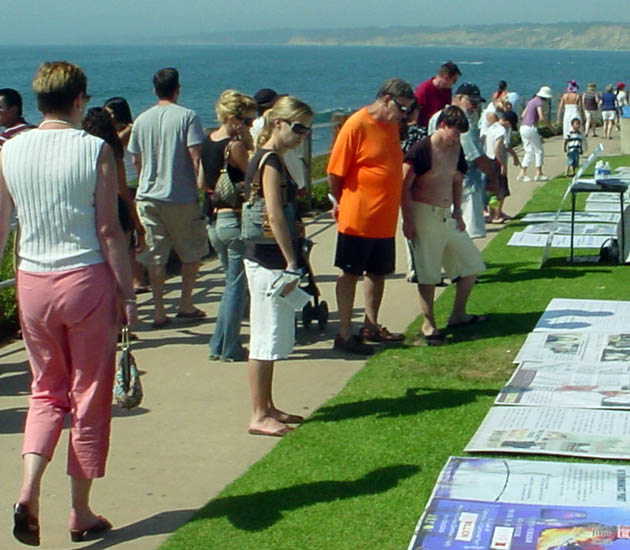 ![]() 民众驻足观看图片 | ![]() 签名声援制止迫害 |