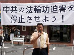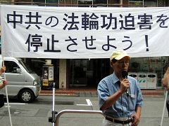 鹤园雅章说,中共1999年7月20日开始迫害法轮功,现在已经七年,迫害还在继续,已经证实迫害致死的法轮功学员近3000人,实际死亡人数可能远远高于这个数字,我们希望日本各界了解这些事实,大家的关注和声援对于尽快停止这场迫害非常重要。7月20日到25日在东京都议会,有由关注世界人权的东京都议员主办的“中国人权侵害”摄影和绘画展览,欢迎前往观看,了解法轮功遭受迫害的事实。