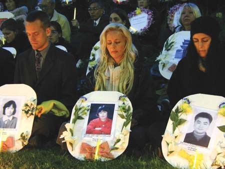 烛光悼念会首先由主办单位做活摘器官事件报告:今年三月份以来,在海外陆续有证人站出来指证,中共将关押在劳教所、监狱、集中营内的法轮功学员,活生生的摘取他们的内脏器官供做器官移植手术使用,从中牟取暴利。