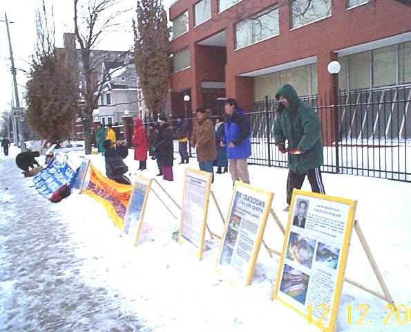 ![]() 法轮功学员在中使馆前宣读抗议书 |