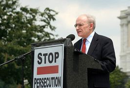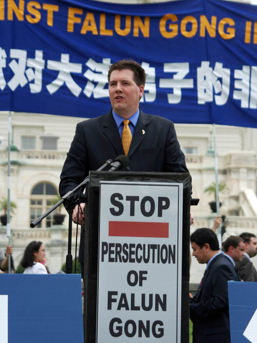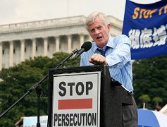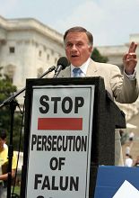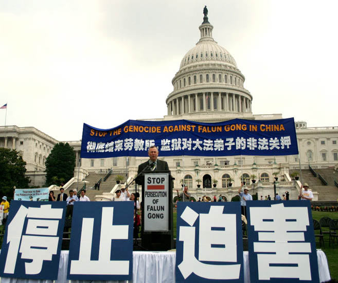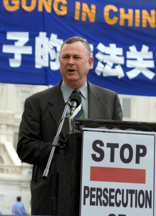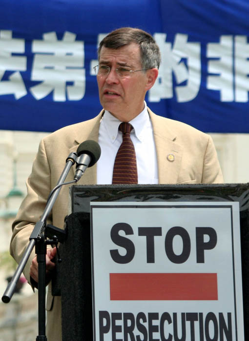 美国科州国会众议员汤姆•谭克兰多(Tom Tancredo)说:自从我被选为国会议员,我了解了你们为了能自由炼功而进行的抗争。我知道成千上万的法轮功学员受到关押、监禁,被关进劳教所。一位在原中共大使馆的高官出走并参加了法轮功学员的集会,这表明,中共一定会被人们唾弃。