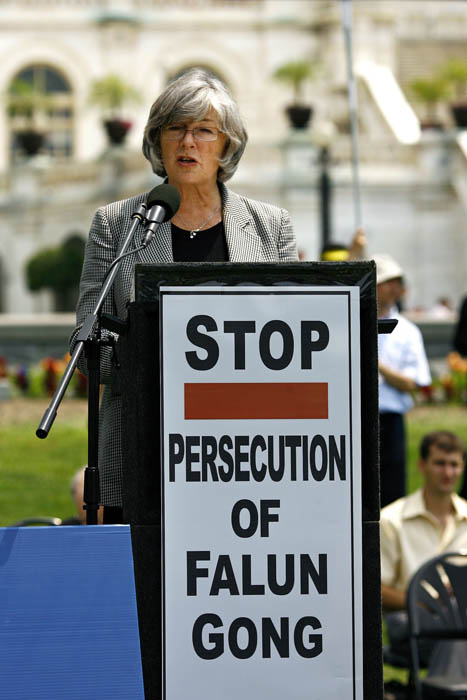 美国加州议员琳•伍尔西(Lynn Woolsey)在发言中说:“中共及其代理对法轮功学员的迫害是完全无法接受的。信仰自由不是一种特权,而是每个人都应享有的权利。”