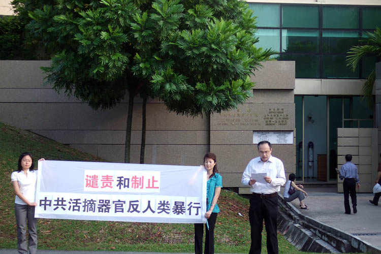 【明慧网2006年7月21日】2006年7月20日下午,泰国法轮功学员来到中使馆前,抗议中共对法轮功长达七年的迫害以及活摘法轮功学员器官暴行。