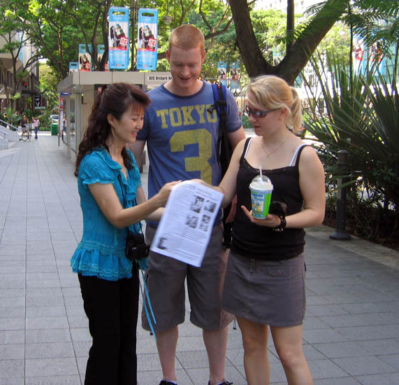 参加征签活动的王秀娇介绍说,在繁华热闹的商业街上,来来往往有新加坡本地人,也有很多各国旅客。学员们友好的向行人出示资料,介绍法轮功被中共迫害的情况,并请他们签名反迫害。公众的反应普遍都很惊讶,许多人都签上他们的名字,呼吁制止迫害法轮功。