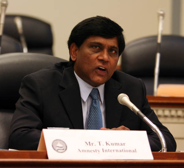 国际特赦组织亚太部主任库马(Kumar)作证说,国际特赦非常关注非暴力的法轮功学员自从1999年以来所遭受的迫害。这种状况令人担忧。尽管国际特赦已经要求中共当局停止迫害法轮功,释放因非暴力的信仰被监禁的法轮功学员,令他们惊讶的是,中共当局却没有采取任何行动,仍在继续抓捕、迫害法轮功学员,有的被关进精神病院。一些法轮功学员的家人也遭到恐吓和虐待。