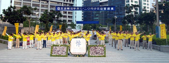 明居正说,有人会说法轮功今天又再集会了,为什么?只因这场迫害持续了七年还没有停止,我们数以百万计的学员被残酷的迫害,甚至迫害致死,难道我们不能发声吗?若我们不说,还有谁会为我们说话呢?我们不但要向台湾人民,向大陆,更要向世界发声,表达我们无言的抗议,我们没有还手,只是不断的告诉世人真相,希望世界善良人士能共同关注,停止这场迫害。