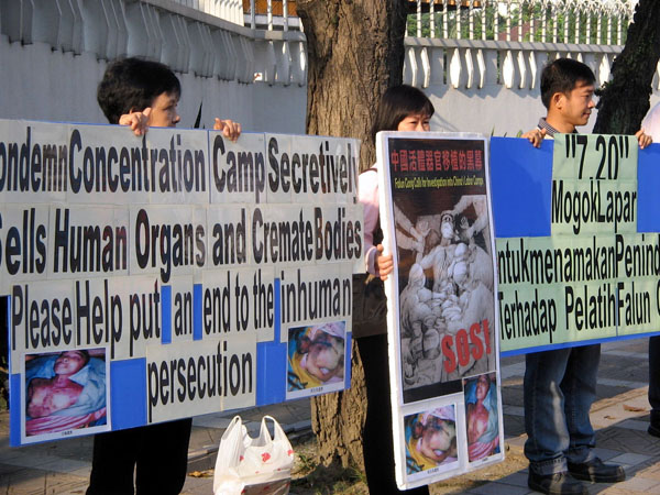 ![]() 在中共驻马大使馆前抗议迫害 |