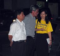 ![]() 前国大代表王廷升参加烛光追悼会 | ![]() 向吉安乡长田智宣(中)与乡代表苏文将(左)讲中共迫害真相 |