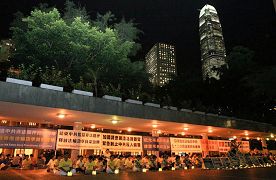 ![]() 7月20日,数百名法轮功学员在香港中环遮打花园进行烛光悼念活动 |