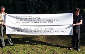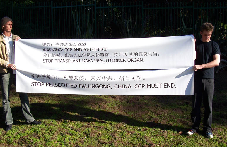 法轮功已有7年,大陆学员遭受了残酷的精神压迫与身体上的迫害。2006年7月20日,南非法轮功学员来到中国驻开普敦领事馆,抗议中共迫害法轮功、活体盗取法轮功学员内脏器官的罪恶行径,并向世人