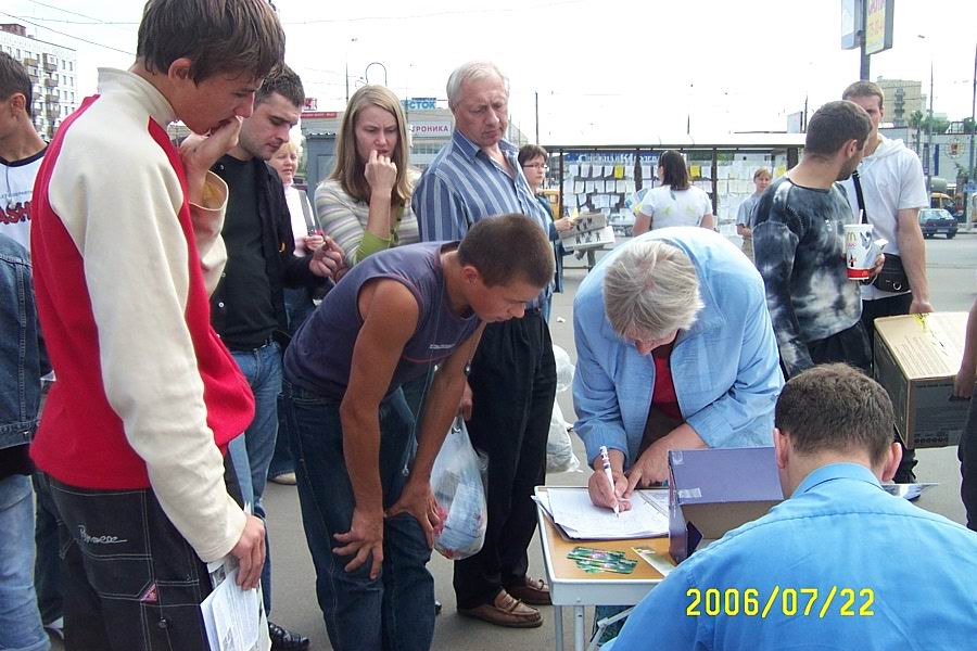 市中心胜利广场人潮不绝,脚步匆匆的人们,不论男女老少,突然无不被眼前的模拟演示震惊了!人们停下来站在近处仔细观看,听着讲解,又一一读了展板, 纷纷在给瑞典政府书上签名,要求政府出面调查,并制止中共对法轮功的迫害。