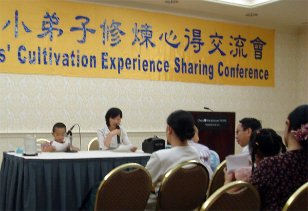 小弟子们以背诵《论语》和读法拉开修炼心得交流会的序幕。这些小弟子们小的只有两三岁,大的已经上了初中。他们交流了在过去的几年里,自己在学法炼功方面有了哪些提高,哪些执著心修掉了,还有哪些执著心,把不好的心暴露出来,要赶紧加油把它修去。难能可贵的是,他们还交流了如何在学校向老师和同学洪法讲真相。小弟子们通过修炼法轮大法,已经不知不觉开始同化着“真、善、忍”宇宙大法。
