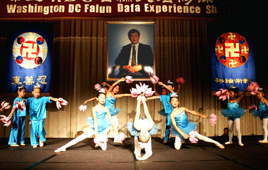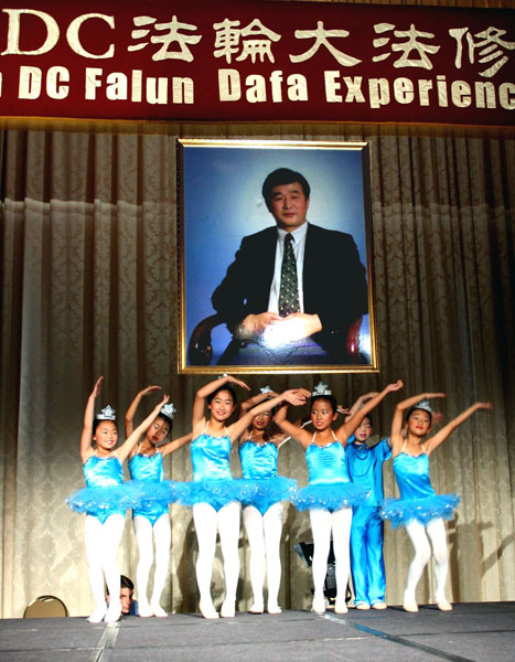这首歌也代表了这些小弟子们的心声。华盛顿DC明慧学校一年前为了营救中国大陆受迫害的法轮功儿童而组织了这支舞蹈队,自费聘请专业老师授课,一年来他们参加了多次社区演出,面对台下观众,由胆怯到从容微笑,逐渐成熟,孩子们的纯真感染了会场中的每一个人,赢得阵阵掌声。