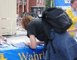 ![]() 路人关注介绍法轮功被迫害情况的展板 | ![]() 我要签名反迫害! |