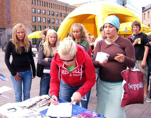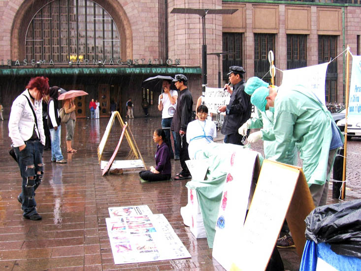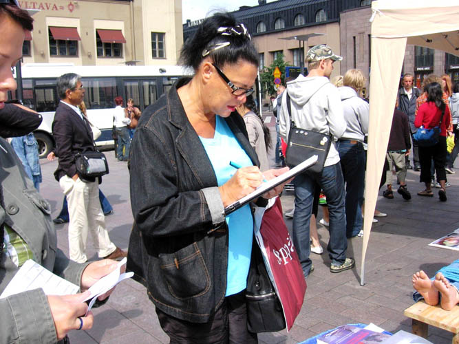 芬兰首都日报(Hufvudstadsbladet)到现场做了全面采访,7月23日发表了一篇题为:“法轮功学员抗议迫害”的专题报导。