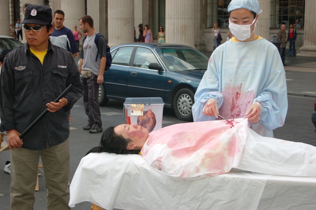 ![]() 演示中共活体摘取法轮功学员器官 | ![]() 演示大法弟子遭受中共酷刑折磨 | ![]() 被中共酷刑震惊的老人 |