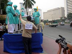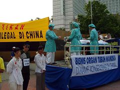 中国政党联盟副秘书长阮杰先生说,大家看到这个模拟活摘器官展了吗?这不是表演,在中国这是真实的存在。自从1999年以来,法轮功学员在中国遭受到极其严重的迫害,甚至被活摘器官。已经七年了!我请每一个人扪心自问,我为法轮功学员做过些什么?在罪行发生的时候,我做了些什么?自从1949年以来,中共就一直在凌虐中国的人民,其中又以迫害法轮功最为甚,中共的暴政必须结束了!