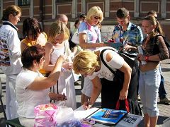 施万多夫市德语直译过来,有个好听的名字:天鹅村。在今年天鹅村千年庆典的活动上,人们欣喜的见到了祥和纯净的法轮大法,同时人们也震惊的了解到,善良的法轮功修炼者在中国已遭受了整整7年的残酷迫害,而且,中共恶党杀人害命之余,甚至盗卖法轮功学员的器官以牟取暴利。面对这令人发指的恐怖事实,不少市民表示:我们不能