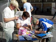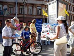![]() 民众认真观看展板,听学员讲真相 | ![]() 签名支持法轮功反迫害 |