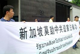 2006年7月10日,九名新加坡法轮功学员收到警署的传票,被控为“非法集会”,原因是他们于去年10月22和23日,在市区分发揭露中共迫害法轮功和声援500万退党的传单。7月20日,三位法轮功学员在中共驻新大使馆前绝食抗议迫害,又被警方在当天起诉。自今年5月新加坡媒体公布了中共610头目李岚清将访问新加坡后,新加坡连续发生了一系列企图遣返法轮功学员,取缔法轮功讲真相活动的事件。