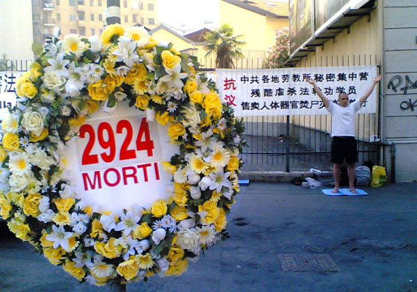 学员们分别在中共驻米兰领事馆、驻佛罗伦萨领事馆和驻罗马大使馆前举行抗议活动,很多学员都是从各地赶来,有的甚至赶了几百公里的路程。学员在各处发放了中文传单,揭露中共活摘法轮功学员器官的罪行,并把米兰刑事法庭宣布的法轮功胜诉、《欧洲侨报》记者蒋明诽谤法轮功被判有罪的消息通过传单告诉华人同胞。