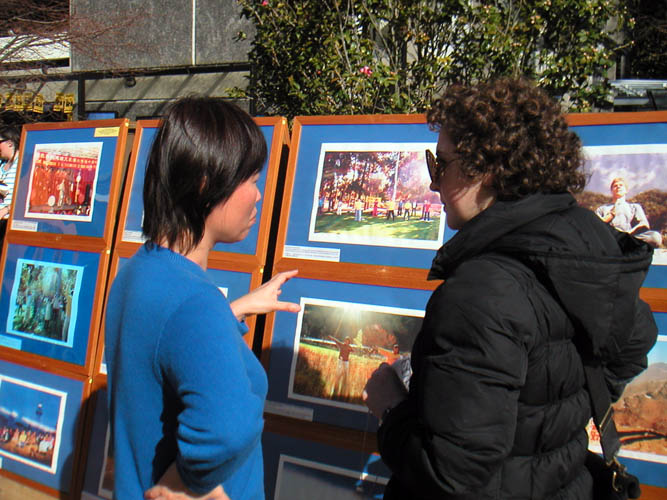 摄影展期间,一个中国留学生拒绝听法轮功被中共迫害的真相,还将摄影照片的展板踢倒在地上,当场被几位有正义感的观众看到抓住,马上制止,还要帮助作证,要办摄影展的学员把那个留学生告到警察局处理,让政府遣送他回国,不准他在奥克兰大学留学。但法轮功学员们本着真、善、忍的信念,希望再给他改正的机会,让他明白真相,并没有把他告到警察局,最后他终于向摄影展的学员道歉。