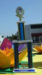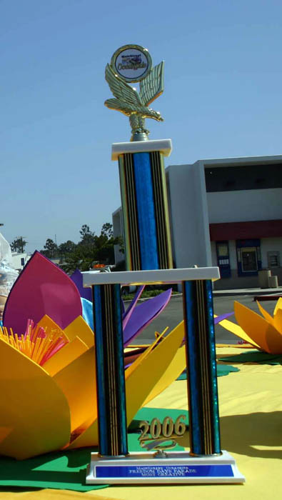 上午10点左右,游行正式开始前,主办者送来了一个漂亮的奖杯——原来经过游行前的项目评审,法轮功学员获得了这次游行的最佳创作奖。这是法轮功学员们第三年参加海边市的独立日游行,学员们的游行队伍包括大型“法轮大法”横幅、花车、腰鼓队和舞蹈队。法轮功学员们的队伍所经之处,沿途观众不断的鼓掌、并向他们挥手表示欢迎。