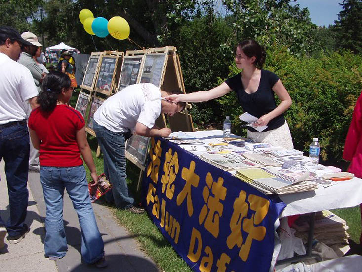 一位来自波兰的先生看过传单后,特意返回来跟学员说,“共产党实在是太坏了,波兰的共产党已经解体,但中国的还存在。美国和加拿大政府对中国政府的经济援助与贸易往来实际上是在滋养邪魔,助长邪焰。世界上所有的政府都应该对中共说不!”