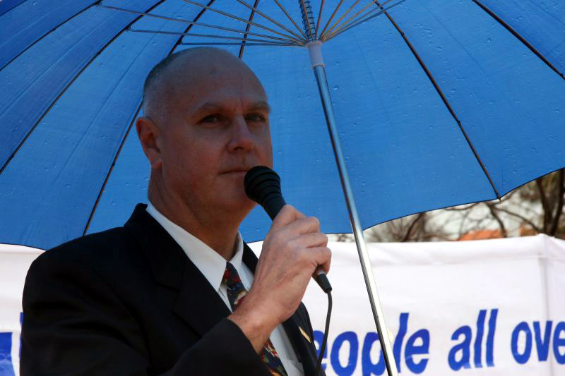 ![]() 法轮功学员在澳洲外交部门前举行活动,要求制止迫害 | ![]() 纽省法轮大法学会会长约翰•戴勒发言 |