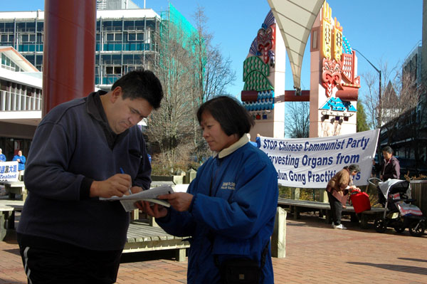 多元种族文化委员会前主席Peter先生说:“我非常高兴你们走出来让更多的人了解正在中国发生的活体摘取法轮功学员器官的真相,我支持你们的正义行动。”
