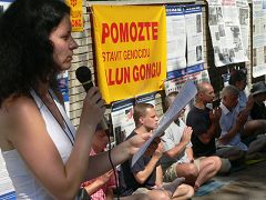 在上午11点开始的记者会上,两位法轮功学员分别用捷克文和中文宣读了给新任大使霍玉珍和其他使馆官员的公开信,要求立即停止迫害法轮功。