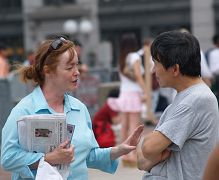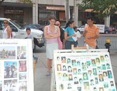 ![]() 法轮功学员向路人详细讲真相 | ![]() 一位父亲帮着法轮功学员向女儿讲真相 |