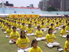 ![]() 2005年中坜学员在校园运动会表演功法 | ![]() 2006年5月13日台北市政府前千人炼功庆祝世界法轮大法日 |