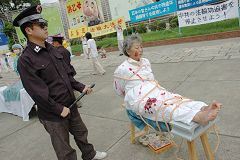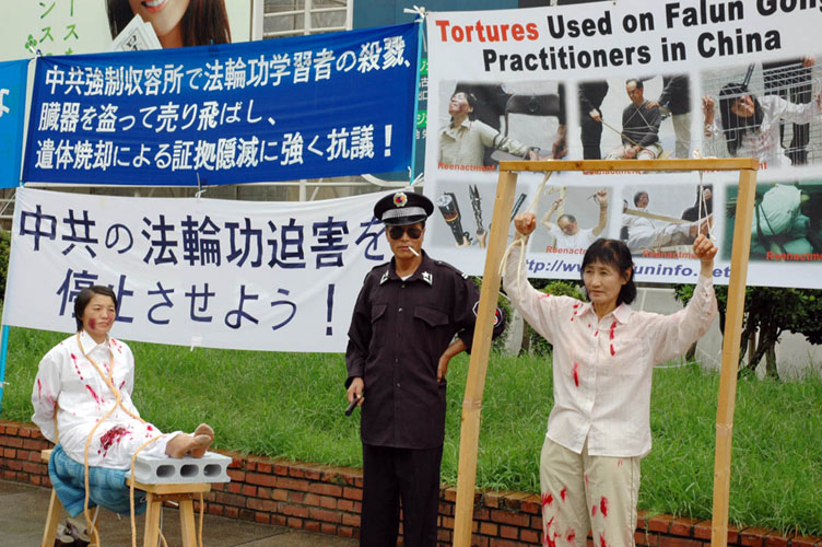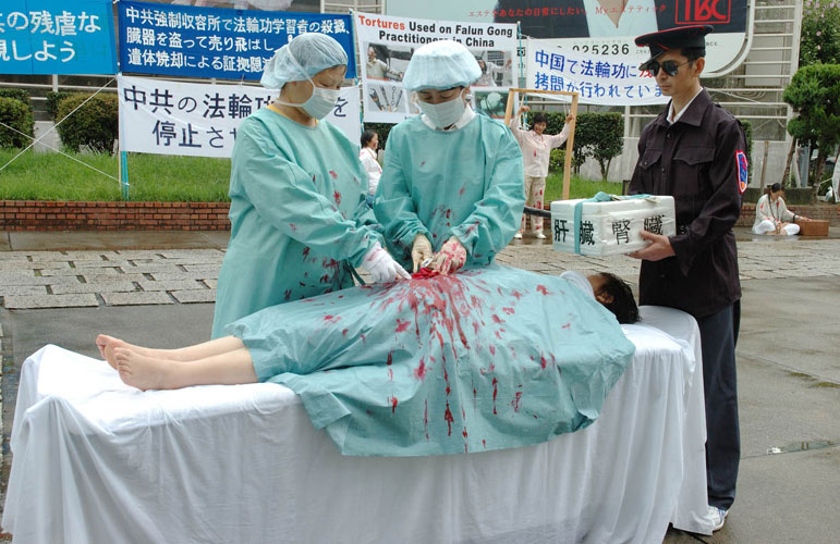 ![]() 法轮功学员以真人模拟演示揭露中共活体摘取贩卖法轮功学员器官 |