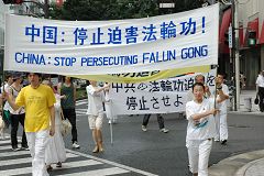 下午,法轮功学员们在名古屋市内进行了游行,同时向路人派发了揭露中共有组织的活体摘取法轮功学员器官贩卖的传单。