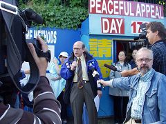 2006年7月7日,温哥华法轮功学员在中领馆前召开了新闻发布会,响应由加拿大前亚太司司长、资深国会议员大卫·乔高和国际人权律师大卫·麦塔斯组成的独立调查组6日公布的对中共活体摘取法轮功学员器官指控的调查报告。