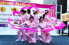 ![]() 法轮功学员表演扇子舞 | ![]() 大人小孩一起折莲花,听真相 |