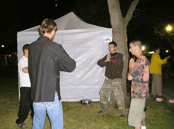 夜幕降临后,为了弥补电力照明的不足,学员们点起了自制的莲花灯,吸引了众多游人。有位游人签名后看着莲花灯不肯离去,大法弟子便拿出多余的莲花灯相送。当游人们得知所有的资料都是免费,并且都是由学员个人自愿出资,所有参加活动的学员都是志愿者时,他们不由得从心里感到敬佩。