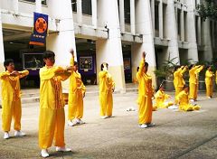 画展从每天上午九点开始到下午四点结束。展出的第一天,学员们表演了腰鼓、仙女舞和五套功法,并向前来观看的人们讲解画展内容和法轮功真相。