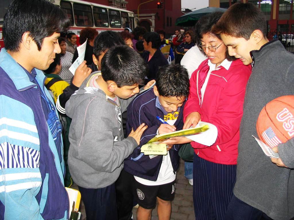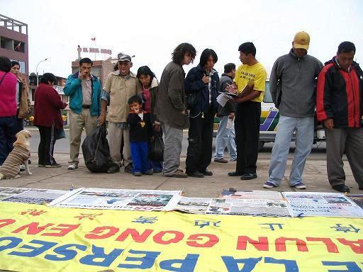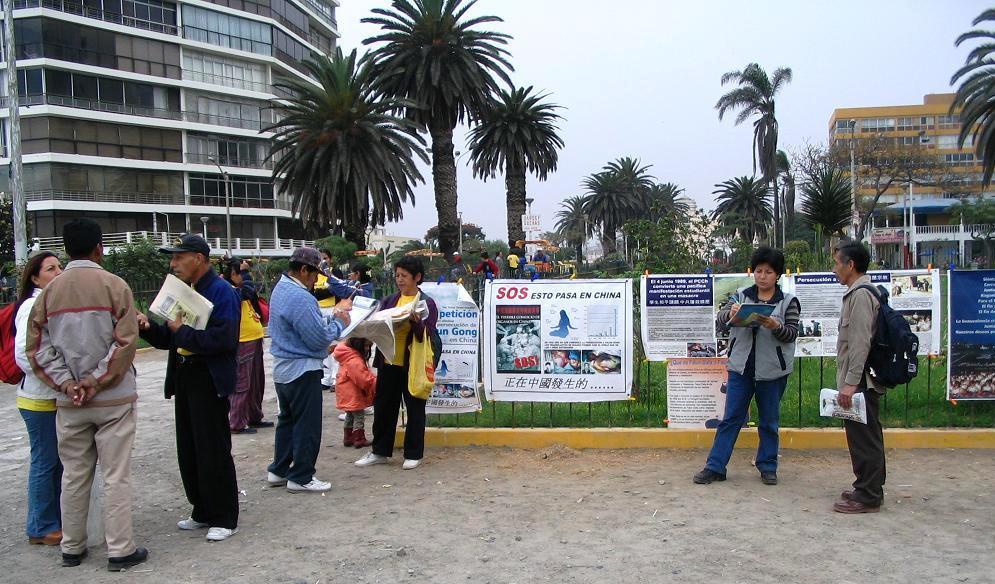 为了呼吁制止中共对法轮功学员的血腥屠杀,秘鲁法轮功学员首次以征集各界民众的签名而告知天下。当征集到4325个(173页)支持者的签名后,秘鲁学员把173页的签名复印件连同揭露中共在中国活体摘取、盗卖法轮功学员人体器官罪行的所有资料、法轮功真相DVD、西文版的关于中共活摘法轮功学员器官的加拿大调查报告、西文版《九评共产党》一书和法轮功学员的信件,送给了联合国人权办公室秘鲁办事处(ASOCIACION PRO DERECHOS HUMANOS)、秘鲁国际人权办公室(COORDINADORA NACIONAL DE DERECHOS HUMANOS)。