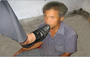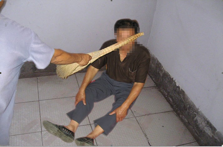 99年10月份,还没有种上小麦,恶警曹金辉带人把他的家抄了,当晚就把他抓到了派出所。第二天上午曹金辉等三人毒打了他一顿,下午又打了一顿。将近晚上,把他送到了拘留所。在拘留所期间,曹金辉等三人又来了,在拘留所的办公室里,毒打了他一个多小时:曹把他打倒在地,用笤帚把打他的头、脸(当时就把拘留所里的一把用来扫室内的笤帚打碎了),揪头发,头发被揪下很大一堆,并扬言“非得叫你去几层皮,掉几斤肉不可,上北京回来没打你,你赚了便宜,当时没那个指示,现在打死你都没有管的”,恶党匪警曹金辉把他眼里打得就象血块一样,整个眼睛被打青了,待了近20天还没变过来。