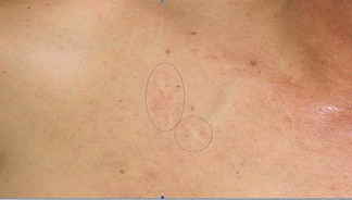 ![]() 上图:此锁子骨两处是被恶警秦洁用穿着皮鞋的脚踢的, 化脓后留下的疤痕,至今已过去六年多的时间,伤疤依然清晰可见。 |