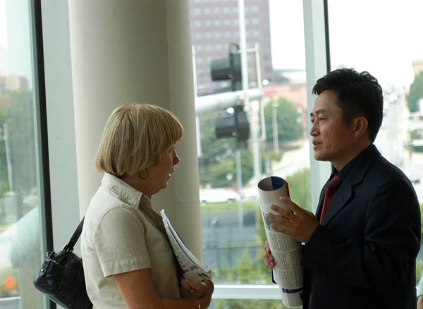 ![]() 李祥春与威尔特教授交谈 |